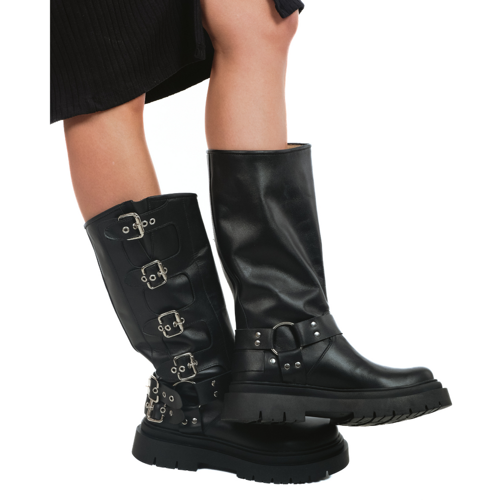 Explora nuestra selección de botas negras de cuero para mujer, donde la sofisticación y el estilo se encuentran con la máxima calidad. Perfectas para cualquier look, nuestras botas ofrecen un diseño elegante y atemporal que se adapta a todas tus aventuras.