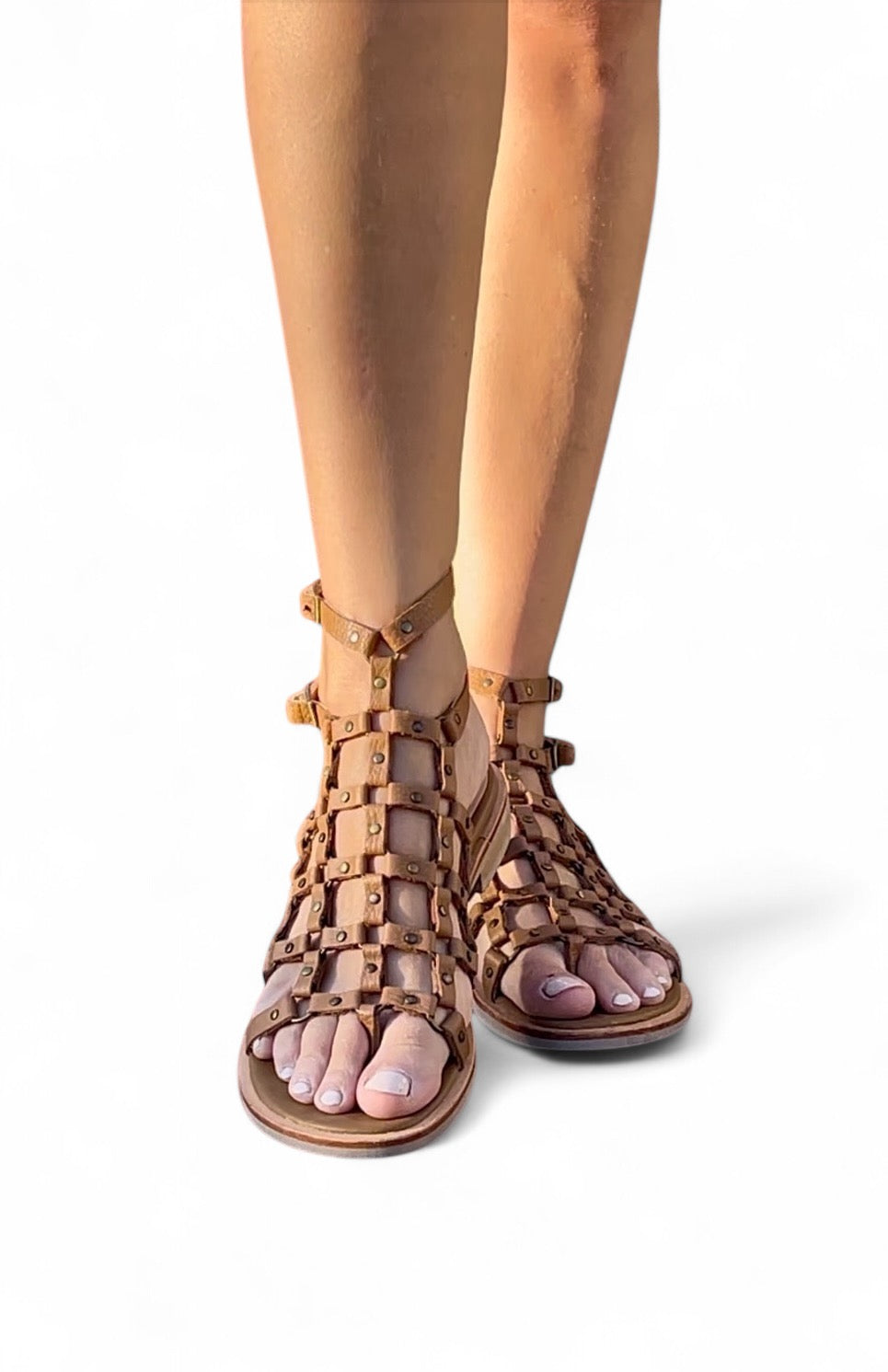 SANDALIA DE CUERO PAULINA NEGRA ALTA